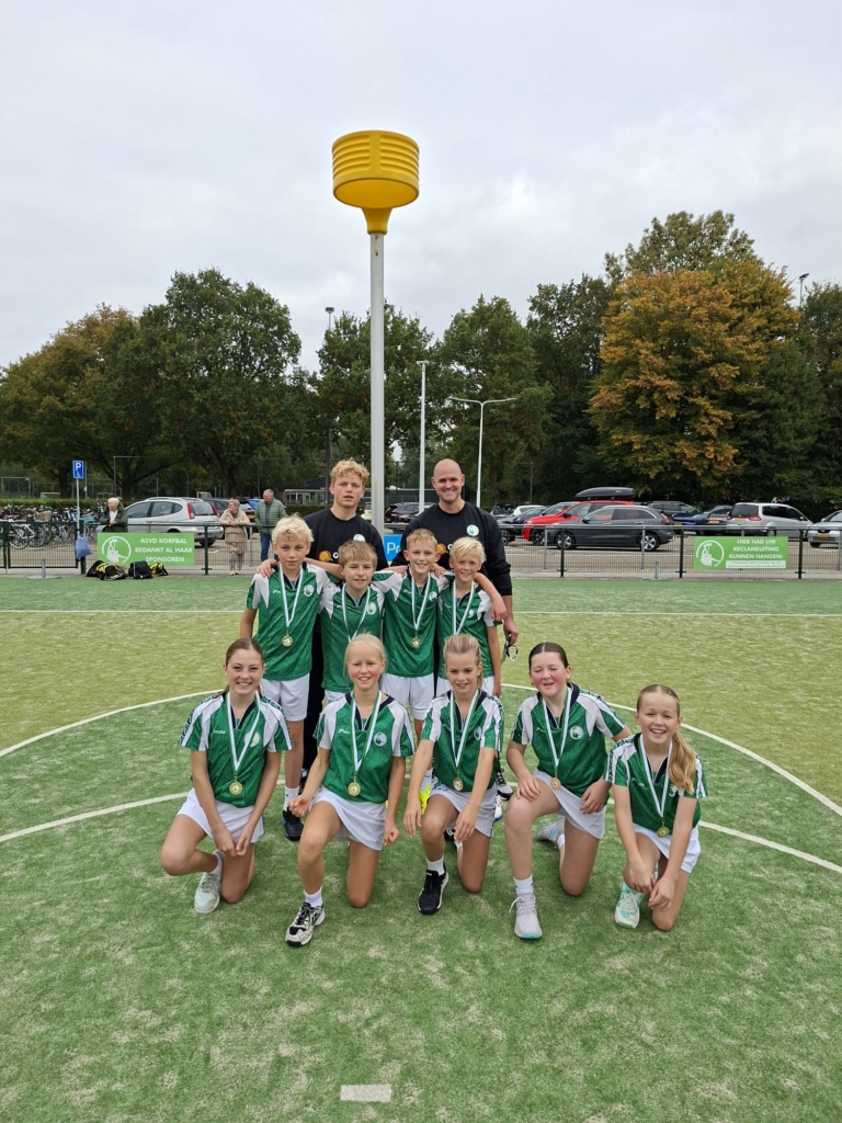 In de categorie groen (voorheen de E) wist ASVD | Q-cape J10 gedeeld kampioen te worden met Sparta Zwolle J18 door thuis met 6-5 te winnen. Uit werd er met 8-8 gelijk gespeeld. ASVD had echter 4 oktober bij Exakwa in Lelystad met 3-1 verloren. Een mooie gezamenlijke foto met alle medailles en felicitaties voor Carlian, Loeke, Nathan, Neil, Luuk, Nilou en de coaches Jacco en Dieuwke.