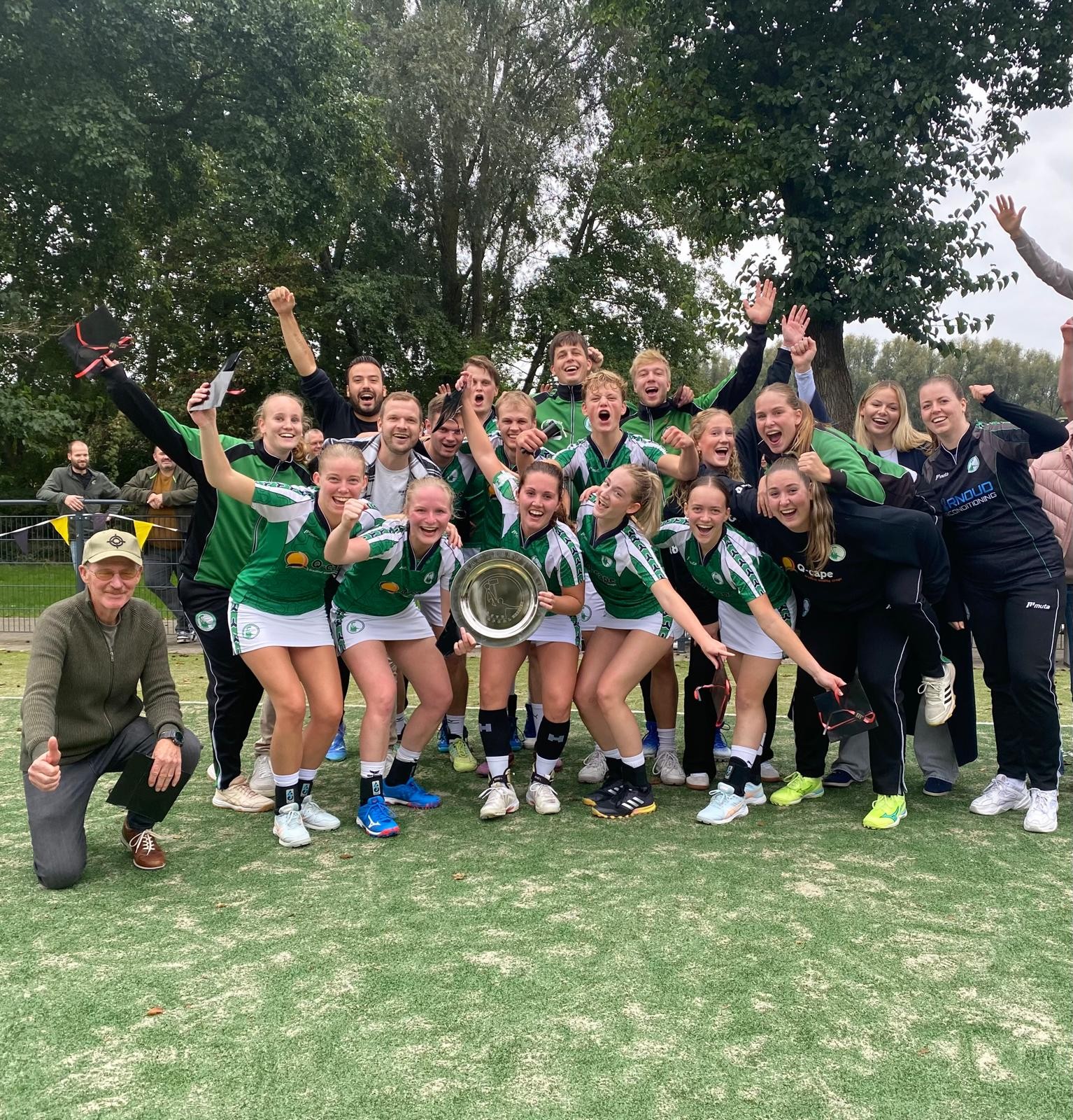 In de categorie groen (voorheen de E) wist ASVD | Q-cape J10 gedeeld kampioen te worden met Sparta Zwolle J18 door thuis met 6-5 te winnen. Uit werd er met 8-8 gelijk gespeeld. ASVD had echter 4 oktober bij Exakwa in Lelystad met 3-1 verloren. Een mooie gezamenlijke foto met alle medailles en felicitaties voor Carlian, Loeke, Nathan, Neil, Luuk, Nilou en de coaches Jacco en Dieuwke.